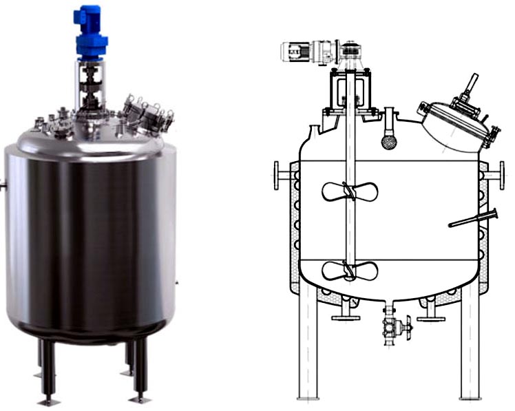 304、316L材料制作,以及設(shè)置加熱、冷卻裝置,以滿足不同的工藝和生產(chǎn)需要.加熱形式有夾套加熱、盤(pán)管加熱,該設(shè)備結(jié)構(gòu)合理、工藝先進(jìn)